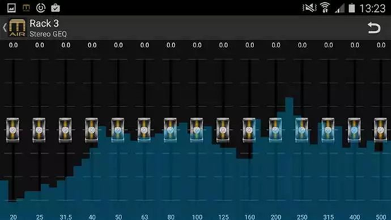 MR18內置高端的100段頻帶的實時頻譜分析儀,所有輸入輸出通道的EQ頁麵具備完整的條形圖和光譜RTA顯示。另外RTA也可顯示於GEQ頁麵,擁有MR18後對信號的監視和控製從此變得更容易!