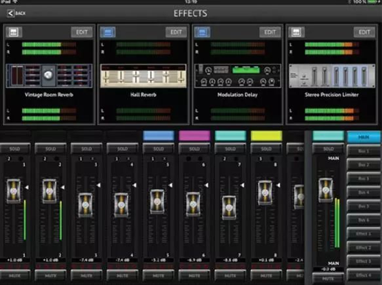 MR18內置了和M32一樣的效果器處理引擎。效果器機架提供了4對立體聲處理通道,可選擇包括延時、混響、動態處理和GEQ等,並且不需要增加任何額外的硬件。