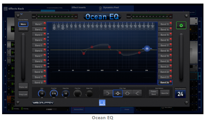 不僅如此,HD96-24還有著諸多強大且便捷的功能,在處理現場音頻時大顯身手。例如,使用了AUTOMIX自動混音來管理話筒音量;使用PIE擴展器,能對話筒聲音信號進行有效的降噪;還有使用內置Lake處理器強大EQ處理算法的Ocean EQ,進行觀眾區擴聲的係統優化等等。